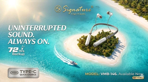 The Signature VMB-146 Wireless Neckband is more than just a device—it’s your gateway to premium audio and hassle-free convenience. Whether you're hitting the gym, commuting to work, or relaxing at home, this neckband is designed to keep up with your pace and deliver exceptional performance every step of the way.